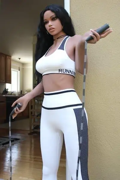 Janice. A sexy and lovely woman. Thick lips, dark skin, big eyes, and curly hair look particularly attractive. Beautiful figure, wearing sportswear. Looks particularly healthy. The body is particularly flexible and soft, and can do many difficult movements.